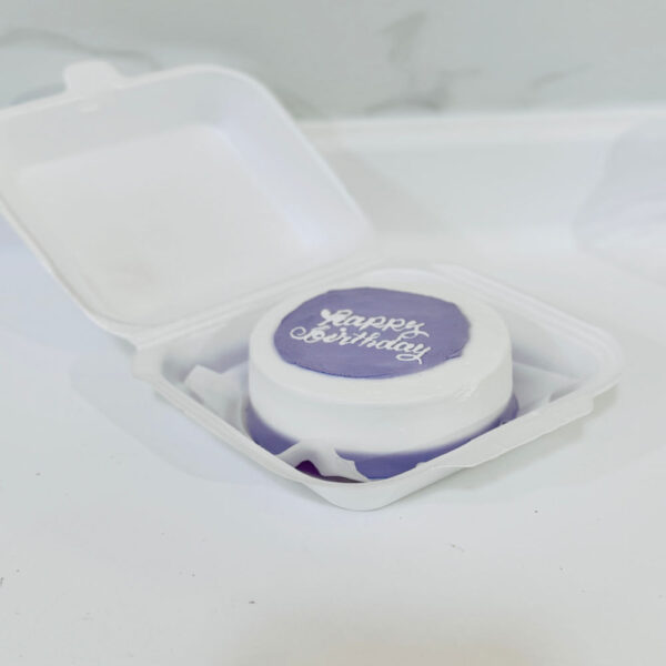 كعكة غداء باللونين الأرجواني والأبيض، تتميز بطبقة زينة ناعمة في مزيج أنيق من اللون الأرجواني والأبيض. مثالية لمفاجأة عيد ميلاد وهي متعة ساحرة ولذيذة. متوفر بحشوة الفانيليا أو الشوكولاتة أو الرد فيلفيت.